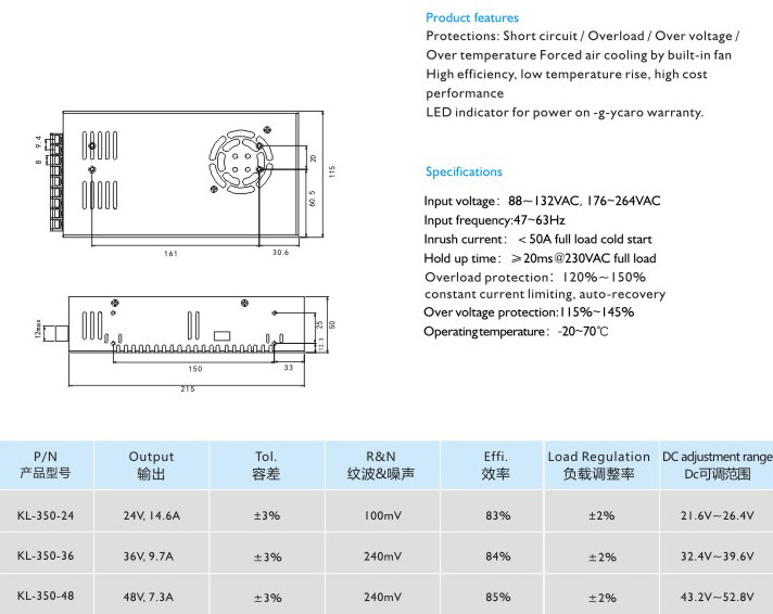 高效率、低溫升高性價比 適用于LED顯示、工業(yè)控制 輸入電壓:88-132VAC,176-264VAC 輸入頻率:47~63Hz 沖擊電流:<50A滿載冷態(tài) 保持時間:≥20ms@230VAC滿載 過載保護:120%-150%限流保護,自動恢復(fù) 過壓保護:115%~145% 運行溫度:-20-70℃" />